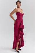 Bu büyüleyici elbise, ön kısmındaki fırfır detayıyla dikkat çekici ve etkileyici bir görünüm sunuyor.