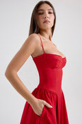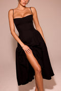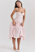 'Maria', geç yaz için tek ve hazır elbiseniz. Nefes alabilen twill kumaştan kesilmiş, belinizi kavrayan boneli bir korseye sahip ve kalp yaka ile destekli sütyen kapsülleri bulunuyor. İnce askıları mükemmel uyum için ayarlanabilir ve pile detayları midi etek kısmına hoş bir hacim katıyor.